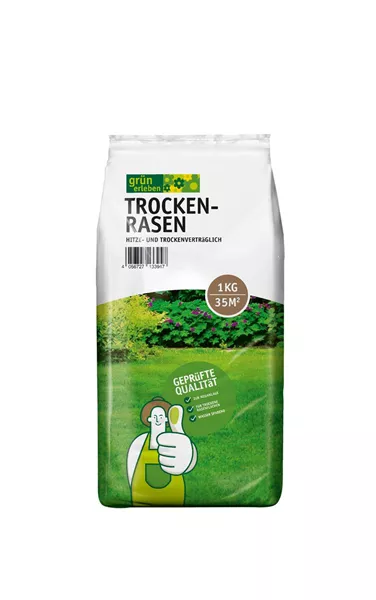 Viel Sonne und Trockenheit setzen Rasenflächen oft zu. Doch mit der richtigen Anlage des Rasens kann man Hitzeschäden ganz einfach vermeiden, zum Beispiel mit trockenheitsverträglichen Rasenmischungen wie dem grün erleben Trockenrasen. Diese Mischung ist speziell für trockene Standorte entwickelt und hält auch dürren Sommern stand. Durch einen hohen Anteil von Schwingelgräsern bleibt der Rasen bei Trockenphasen deutlich länger grün als normale Rasenmischungen. Und jetzt im Mai ist eine gute Zeit frisch auszusähen, da sie in der Regel perfekte Bedingungen, also eine Bodentemperatur von ca. 10 Grad und ausreichend Feuchtigkeit, um schnell zu keimen haben.
