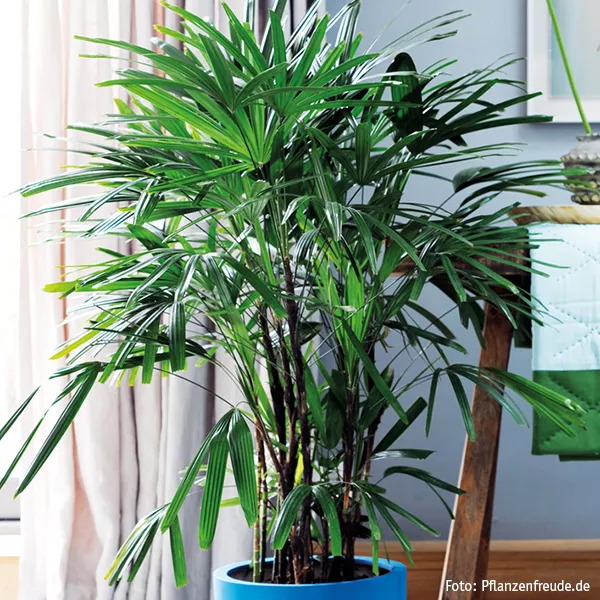 Ein weiterer Exot, der für ein Flair ferner Länder sorgt und den Sie mit Ihrem Haustier alleine lassen können, ist die pflegeleichte und üppig wachsende Steckenpalme (Rhapis). Ihre Palmwedel sind nicht nur schön anzusehen, sie können sogar Schadstoffe aus der Luft filtern.