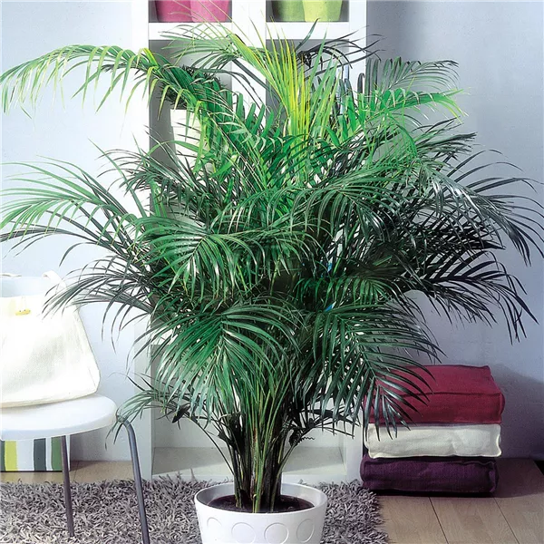 Auch die Goldfruchtpalme (Dypsis lutescens) eignet sich hervorragend für ein tierfreundliches Zuhause. Die schönen grünen Wedel sorgen nicht nur das ganze Jahr über für ein entspanntes Urlaubsgefühl, sondern Dank ihrer luftreinigenden Eigenschaften verbessert sie zudem auch das Raumklima.