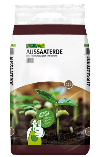 Die grün erleben AUSSAATERDE ist besonders feinkrümelig und geeignet zum Aussäen, Stecken und Pikieren in Saatkisten, Schalen und Töpfen. Nährstoffgehalt und pH-Wert sind exakt auf die Bedürfnisse von Jungpflanzen abgestimmt. Perlite sorgen für höchste Strukturstabilität und vermeiden Staunässe. Befüllen Sie die Saatkiste oder Töpfe mit grün erleben AUSSAATERDE, gießen Sie an, säen Sie erst danach aus und decken Sie die Samen hauchdünn ab. Bis zur Keimung / Bewurzelung gut feuchtwarm halten.