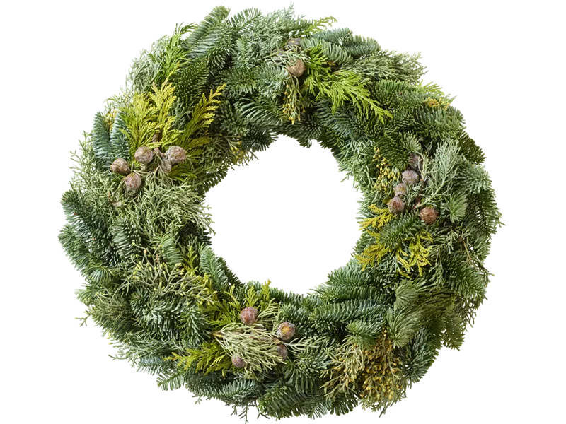 Der Advents-Monokranz (z. B. aus Silbertanne (Abies nobilis) oder Nordmanntanne (Abies nordmanniana)) ist schlicht und dennoch elegant. Er ist ein unverzichtbares Accessoire in der Weihnachtszeit und fügt sich in jede winterliche Dekoration ein. Mit ihm kann man seinen kreativen Vorstellungen freien Lauf lassen. Mit Kerzen oder vielen weihnachtlichen Accessoires, wie mit Weihnachtskugeln bestückt oder mit Pflanzen verziert – alles ist möglich. Wer mag, der kann den Kranz auch hängend an einer Tür befestigen. Verschiedene satte Grüntöne der Natur vereint der Advents-Mixkranz. Ohne viel Tamtam sind die verschiedenen Mixkränze echte Hingucker. Er ist beidseitig gebunden und eignet sich für einen vielseitigen Einsatz in der weihnachtlichen Dekoration.