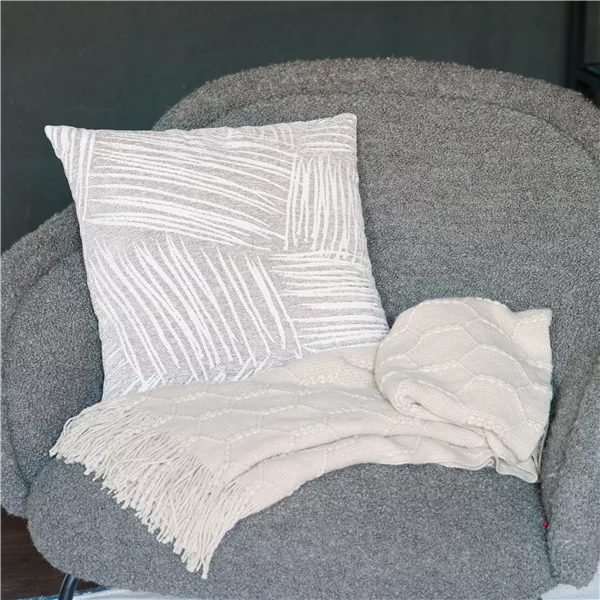 Mit diesem Kissen und der Decke wird´s überall gemütlich. Ob im Sessel, auf dem Sofa oder für die ersten lauen Abende auf der Terrasse oder Balkon. In den Trendfarben Graubraun und Beige sind das Kissen und die Decke zeitlos und vielseitig einsetzbar.