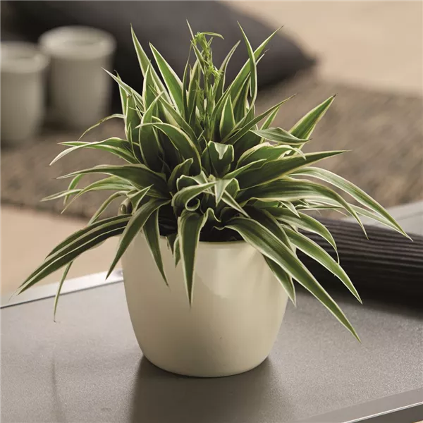 Die beliebte Grünlilie (Chlorophytum variegatum) wächst an fast jedem Standort und ist äußerst pflegeleicht. Diese "Lufterfrischungsmaschine" ist dafür verantwortlich, dass Ihre Lungen nur saubere und frische Luft atmen. Und dafür verlangt sie nicht viel: Im Sommer feucht halten, im Winter weniger Wasser. Die dünnen Blätter der Grünlilie können eine Länge von gut 45 cm Länge erreichen. Je nach Sorte sind die meist länglichen Blätter grün, grün-weiß oder grün-gelb gestreift.