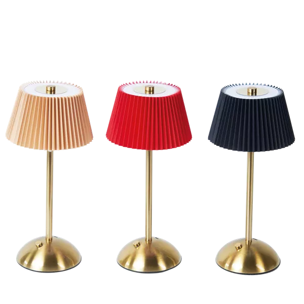 Diese LED-Tischlampen verbinden klassisches Design mit moderner Technik. Ein plissierter Schirm in Creme, Rot oder Schwarz trifft auf einen goldfarbenen Fuß und wirkt dadurch besonders elegant. Dank integriertem Akku und USB-C-Anschluss sind die Lampen flexibel einsetzbar: auf dem festlich gedeckten Tisch oder als stimmungsvolle Beleuchtung im Eingangsbereich. Wiederaufladbar und kabellos bringen sie warmes Licht dorthin, wo es gebraucht wird.