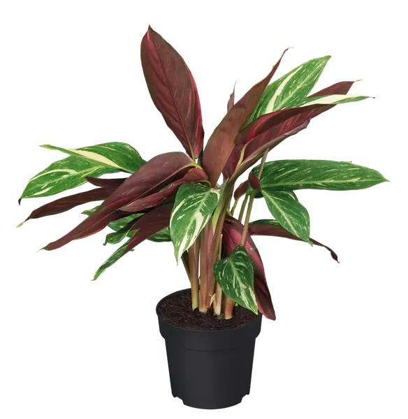 Die Korbmarante (Calathea) ist für ihre außergewöhnlichen Blattzeichnungen bekannt. Besonders die Sorte 'Trio-Star' fasziniert durch ihre länglich geformten Blätter in einem spannenden Farbspiel aus dunklem Grün, sanftem Rosé und Cremeweiß. Für ihr Wohlbefinden bevorzugt sie einen halbschattigen Standort ohne direkte Sonne, gleichmäßige Feuchtigkeit und eine etwas höhere Luftfeuchtigkeit.