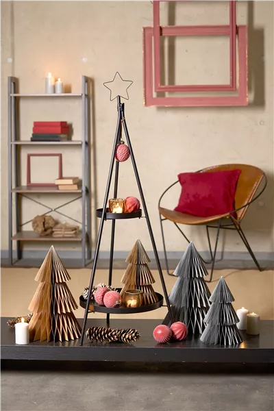 Dekorieren Sie diesen stilisierten Weihnachtsbaum mit Sternenlichterkette und farblich abgestimmten Kugeln: